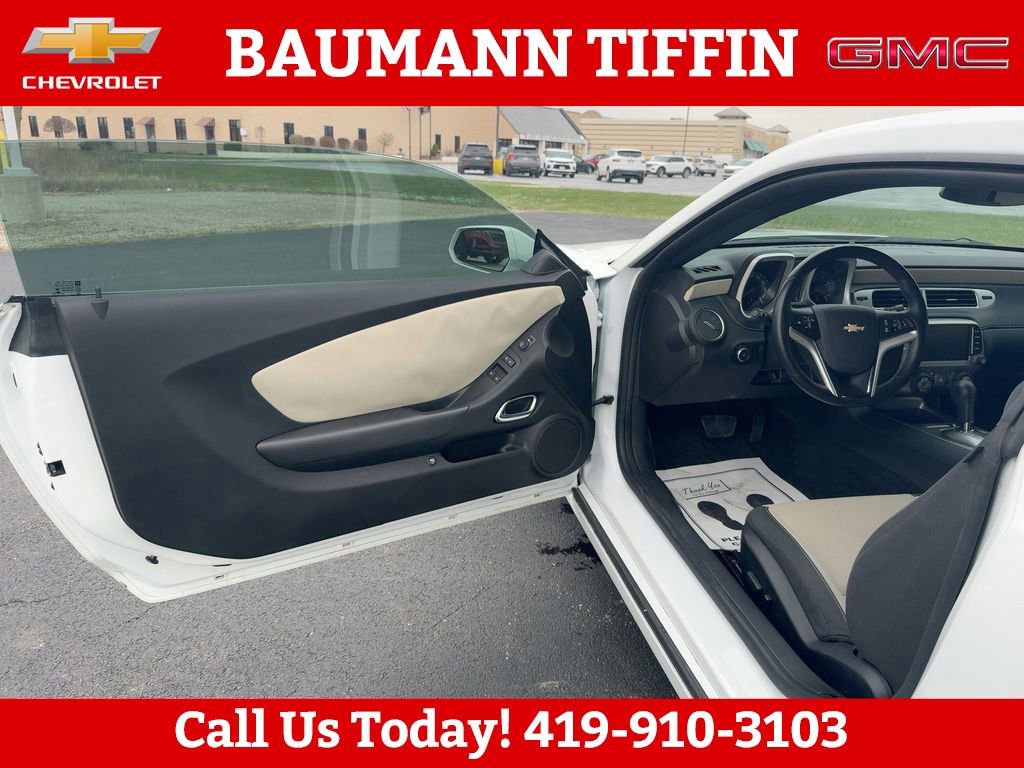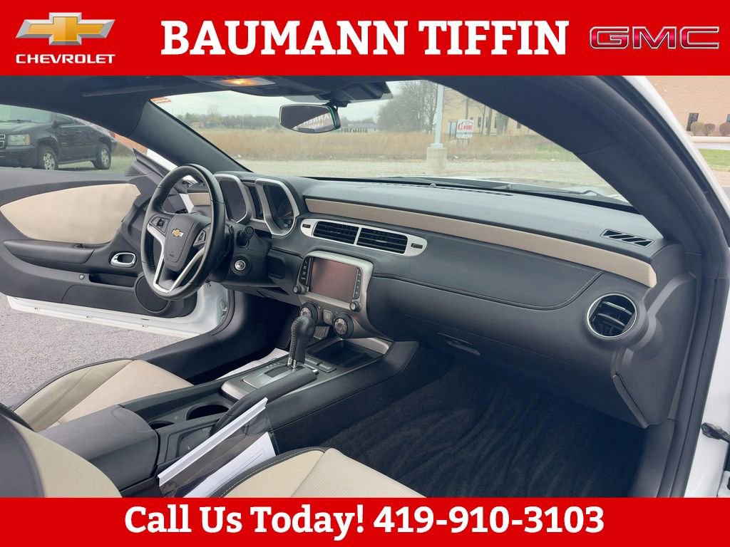 Odometer is 48801 miles below market average! Clean CARFAX.Summit White 2014 Chevrolet Camaro 1LT 2D Coupe 3.6L V6 DGI DOHC VVT 6-Speed Automatic with TapShift RWD18 Painted Aluminum Wheels, 19 Bright Aluminum Wheels, 2 Front Cup Holders, 3-Spoke Leather-Wrapped Steering Wheel, 4-Wheel Antilock 4-Wheel Disc Brakes, 4-Wheel Disc Brakes, 6 Speakers, 6-Speaker Audio System, 6-Way Power Driver Adjuster w/Power Recline, 6-Way Power Fr Passenger Adjuster w/Power Recline, ABS brakes, Air Conditioning, Alloy wheels, AM/FM radio: SiriusXM, Analog Instrumentation, Brake assist, Bumpers: body-color, Carpeted Front Floor Mats, Compass, Delay-off headlights, Driver door bin, Driver vanity mirror, Dual front impact airbags, Dual front side impact airbags, Electric Rear-Window Defogger, Electronic Cruise Control, Electronic Stability Control, Emergency communication system: OnStar Directions & Connections, Four wheel independent suspension, Front anti-roll bar, Front Bucket Seats, Front Center Armrest, Front fog lights, Front reading lights, Front Sport Bucket Seats, Fully automatic headlights, Illuminated entry, LATCH System, Leather Shift Knob, Leather-Wrapped Shift Knob, Low tire pressure warning, Maintenance-Free Battery, Manual Rake & Telescopic Steering Column, Occupant sensing airbag, OnStar 6 Months Directions & Connections Plan, Outside temperature display, Overhead airbag, Panic alarm, Passenger door bin, Passenger vanity mirror, Power door mirrors, Power driver seat, Power passenger seat, Power Programmable Door Locks, Power steering, Power windows, Preferred Equipment Group 1LT, Premium audio system: Chevrolet MyLink, Radio data system, Radio: AM/FM Stereo w/Color Touch, Rear anti-roll bar, Rear window defroster, Remote Keyless Entry, Remote keyless entry, Remote Vehicle Starter System, Security system, SiriusXM Satellite Radio, Speed control, Speed-sensing steering, Sport Cloth Seat Trim, StabiliTrak, Stainless-Steel Dual-Outlet Exhaust, Steering Wheel Mounted Audio Controls, Steering wheel mounted audio controls, Tachometer, Telescoping steering wheel, Tilt steering wheel, Traction control, Trip computer, USB Port Audio System Feature, Variably intermittent wipers.