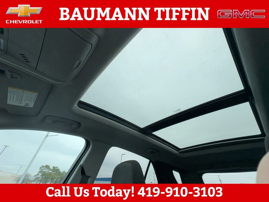 Adaptive Cruise Control, Advanced Safety Package, HD Surround Vision, Outside Heated Power-Adjustable Mirrors, Power Sunroof, Roof-Mounted Luggage Rack Side Rails, 120-Volt Power Outlet, 17 Aluminum Wheels, 2 Rear USB Charging-Only Ports, 2 USB Data Ports, 2 USB Data Ports w/SD Card Reader, 2 USB Ports & Auxiliary Input Jack, 2-Way Power Driver Lumbar Control Seat Adjuster, 3.50 Final Drive Axle Ratio, 4-Wheel Disc Brakes, 6 Speakers, 6-Speaker Audio System Feature, ABS brakes, Air Conditioning, Alloy wheels, AM/FM radio: SiriusXM, Auto High-beam Headlights, Automatic temperature control, Bluetooth® For Phone, Brake assist, Bumpers: body-color, Cold Air Grille Shutter, Compass, Delay-off headlights, Driver 8-Way Power Seat Adjuster, Driver door bin, Driver vanity mirror, Dual front impact airbags, Dual front side impact airbags, Electronic Stability Control, Emergency communication system: OnStar and Chevrolet connected services capable, Four wheel independent suspension, Front anti-roll bar, Front Bucket Seats, Front Center Armrest, Front dual zone A/C, Front Passenger 4-Way Manual Seat Adjuster, Front reading lights, Fully automatic headlights, Heated door mirrors, Heated Driver & Front Passenger Seats, Heated front seats, Heated Steering Wheel, Illuminated entry, Infotainment Package, Low tire pressure warning, Occupant sensing airbag, Outside temperature display, Overhead airbag, Overhead console, Panic alarm, Passenger door bin, Passenger vanity mirror, Power door mirrors, Power driver seat, Power Liftgate, Power steering, Power windows, Preferred Equipment Group 1LT, Premium audio system: Chevrolet Infotainment 3, Premium Cloth Seat Trim, Radio data system, Radio: Chevrolet Infotainment 3 Plus System, Radio: Chevrolet Infotainment 3 System w/AM/FM, Rear anti-roll bar, Rear reading lights, Rear seat center armrest, Rear window defroster, Rear window wiper, Remote keyless entry, Safety & Infotainment Package, Security system, SiriusXM, Speed control, Speed-sensing steering, Split folding rear seat, Spoiler, Steering wheel mounted audio controls, Tachometer, Telescoping steering wheel, Tilt steering wheel, Traction control, Trip computer, Variably intermittent wipers, Adaptive Cruise Control, Advanced Safety Package, HD Surround Vision, Outside Heated Power-Adjustable Mirrors, Power Sunroof, Roof-Mounted Luggage Rack Side Rails.
