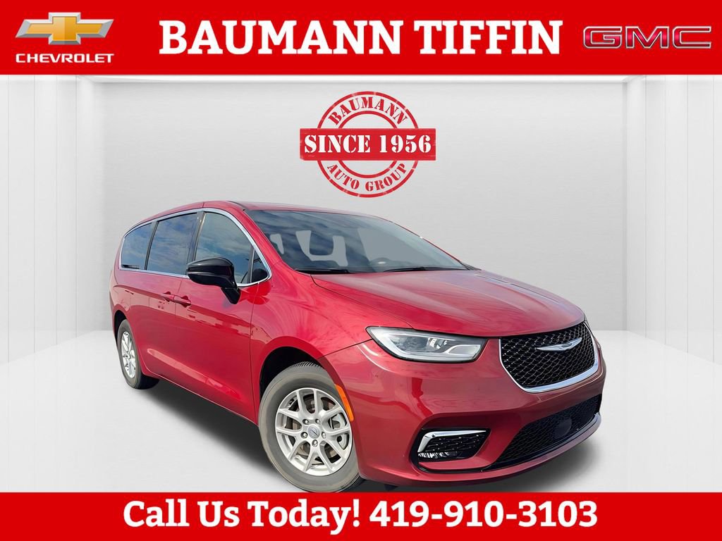 Odometer is 4791 miles below market average! CARFAX One-Owner. Clean CARFAX.Red Hot Pearlcoat 2025 Chrysler Pacifica Select 4D Passenger Van 3.6L V6 24V VVT 9-Speed 948TE Automatic FWD10.1 Touchscreen Display, 17 x 7.0 Aluminum Wheels, 3.25 Axle Ratio, 3rd row seats: split-bench, 4-Wheel Disc Brakes, 4G LTE Wi-Fi Hot Spot, 6 Speakers, ABS brakes, Air Conditioning, Alloy wheels, AM/FM radio: SiriusXM, Apple CarPlay, Apple CarPlay/Android Auto, Auto-dimming Rear-View mirror, Automatic temperature control, Black Seats, Brake assist, Bumpers: body-color, Caprice Leatherette Bucket Seats, Compass, Delay-off headlights, Disassociated Touchscreen Display, Driver door bin, Driver vanity mirror, Driver's Seat Mounted Armrest, Dual front impact airbags, Dual front side impact airbags, Electronic Stability Control, Emergency communication system: Chrysler Connect, For Details, Visit DriveUconnect.com, Four wheel independent suspension, Front anti-roll bar, Front Bucket Seats, Front dual zone A/C, Front Fascia Air Deflectors, Front fog lights, Front reading lights, Fully automatic headlights, Garage door transmitter, Google Android Auto, GPS Antenna Input, Heated door mirrors, Heated front seats, Heated steering wheel, Illuminated entry, Integrated Active Noise Cancellation, Integrated Center Stack Radio, Knee airbag, Low tire pressure warning, Manufacturer's Statement of Origin, Memory seat, Occupant sensing airbag, Outside temperature display, Overhead airbag, Overhead console, Panic alarm, ParkView Rear Back-Up Camera, Passenger door bin, Passenger seat mounted armrest, Passenger vanity mirror, Power door mirrors, Power driver seat, Power Liftgate, Power steering, Power windows, Quick Order Package 27L, Radio data system, Radio: Uconnect 5 with 10.1 Display, Rain sensing wipers, Rear air conditioning, Rear reading lights, Rear window defroster, Rear window wiper, Reclining 3rd row seat, Remote keyless entry, Security system, SiriusXM Guardian - Included Trial (B), Speed control, Split folding rear seat, Spoiler, Steering wheel mounted audio controls, Tachometer, Telescoping steering wheel, Tilt steering wheel, Touring Suspension, Traction control, Trip computer, Turn signal indicator mirrors, USB Host Flip, Variably intermittent wipers, Voltmeter.