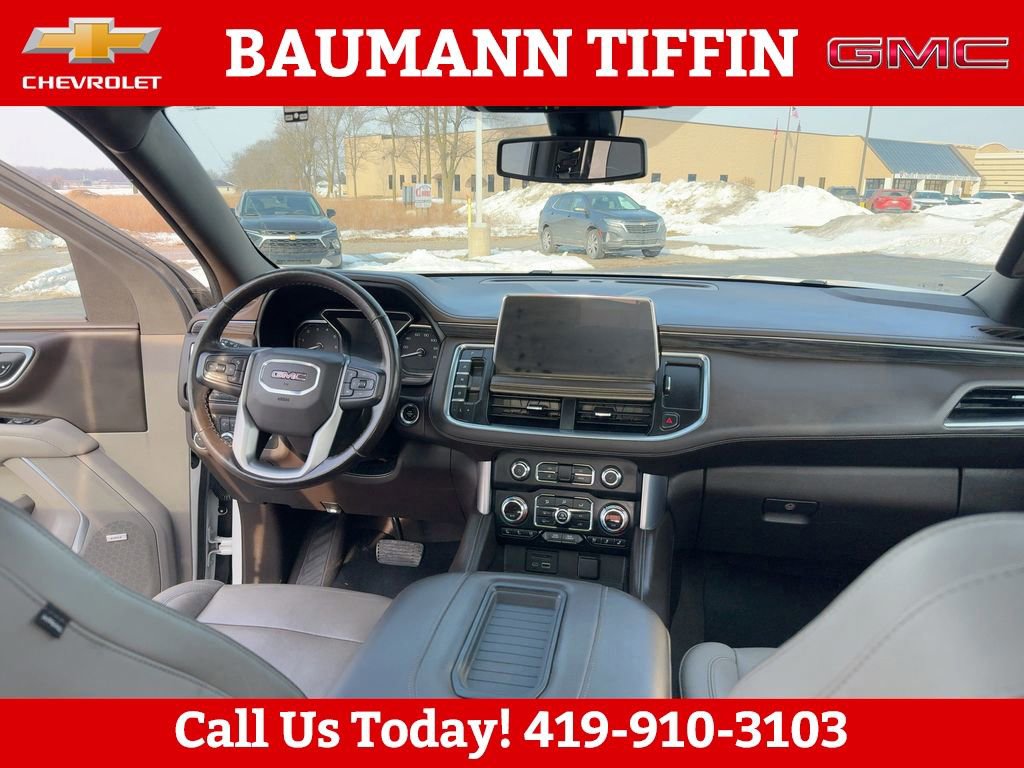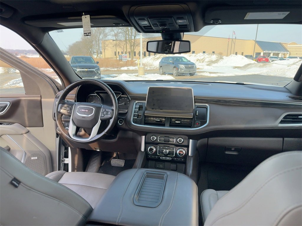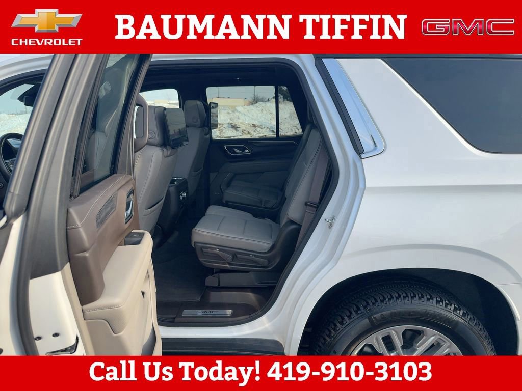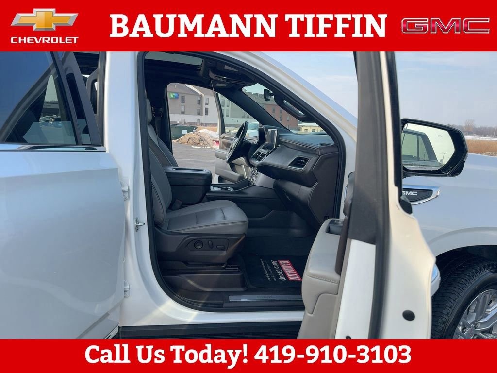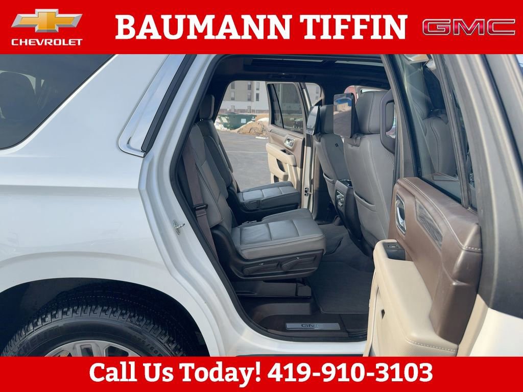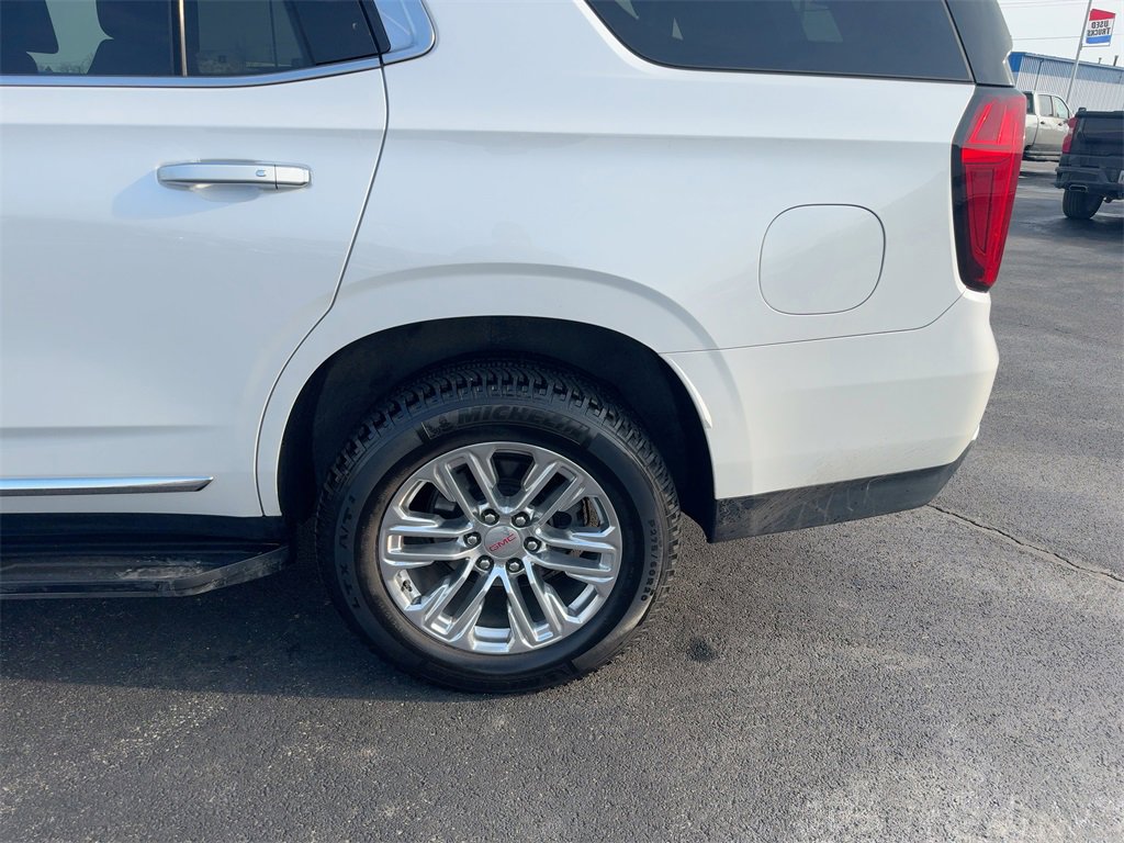 4WD, 12-Way Power Seat Adjusters, 2 Presets For Outside Rearview Mirrors, 2 Presets For Power Driver Seat, 3.23 Rear Axle Ratio, 3rd Row 60/40 Power-Folding Split-Bench Seat, 3rd row seats: split-bench, 4-Wheel Disc Brakes, 9 Speakers, ABS brakes, Air Conditioning, Alloy wheels, AM/FM radio: SiriusXM with 360L, Apple CarPlay/Android Auto, Auto High-beam Headlights, Auto-dimming Rear-View mirror, Automatic Emergency Braking, Automatic temperature control, Bodyside moldings, Bose 9-Speaker Stereo Audio System Feature, Brake assist, Bright Chrome Bodyside Moldings, Bright Front & Rear Door Sill Plates, Bumpers: body-color, Chrome Door Handles w/Body-Color Strip, Compass, Delay-off headlights, Driver door bin, Driver vanity mirror, Dual front impact airbags, Dual front side impact airbags, Dual-Pane Panoramic Power Sunroof, Electronic Stability Control, Emergency communication system: OnStar and GMC connected services capable, Floor Console, Following Distance Indicator, Forward Collision Alert, Four wheel independent suspension, Front & Rear Park Assist, Front anti-roll bar, Front Bucket Seats, Front Center Armrest, Front dual zone A/C, Front fog lights, Front Pedestrian Braking, Front reading lights, Fully automatic headlights, Garage door transmitter, Hands-Free Power Programmable Rear Liftgate, HD Radio, HD Surround Vision, Heated & Ventilated Driver & Front Passenger Seats, Heated 2nd Row Outboard Position Seats, Heated Automatic Steering Wheel, Heated door mirrors, Heated Driver & Front Passenger Seats, Heated front seats, Illuminated entry, Inside Rear-View Auto-Dimming Mirror, IntelliBeam Automatic High Beam On/Off, Lane Change Alert w/Side Blind Zone Alert, Lane Keep Assist w/Lane Departure Warning, Leather steering wheel, Low tire pressure warning, Memory seat, Not Equipped w/Automatic Stop/Start, Not Equipped w/Steering Column Lock, Occupant sensing airbag, Outside Heated Power-Adjustable Mirrors, Outside temperature display, Overhead airbag, Overhead console, Panic alarm, Passenger door bin, Passenger vanity mirror, Perforated Leather Seating Surfaces, Power door mirrors, Power driver seat, Power Liftgate, Power passenger seat, Power Release 2nd Row 60/40 Split-Folding Bench Seat, Power Release 2nd Row Bucket Seats, Power steering, Power Tilt & Telescopic Steering Column, Power windows, Preferred Equipment Group 4SA, Premium Smooth Ride Suspension, Radio: AM/FM/SiriusXM, Radio: AM/FM/SiriusXM w/Navigation, Rain sensing wipers, Rear air conditioning, Rear anti-roll bar, Rear Cross Traffic Alert, Rear Media & Nav Package, Rear Pedestrian Alert, Rear reading lights, Rear seat center armrest, Rear Seat Media System, Rear window defroster, Rear window wiper, Remote keyless entry, Roof rack: rails only, Safety Alert Seat, Security system, SiriusXM w/360L, SLT Luxury Package, SLT Premium Package, Speed control, Speed-sensing steering, Split folding rear seat, Spoiler, Steering wheel mounted audio controls, Tachometer, Telescoping steering wheel, Tilt steering wheel, Traction control, Trip computer, Universal Home Remote, Variably intermittent wipers, Ventilated front seats, Voltmeter, Wheels: 20 x 9 6-Spoke Polished Aluminum, 4WD.